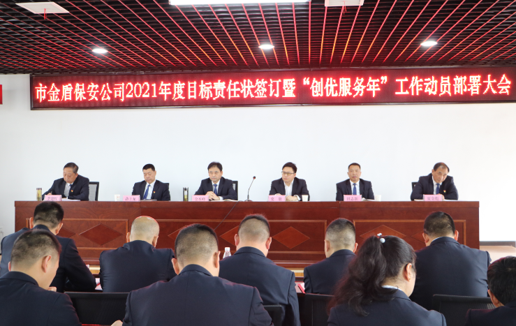 為進(jìn)一步明確公司2021年度各項(xiàng)工作任務(wù),突出以“創(chuàng)優(yōu)服務(wù)”為抓手的工作總基調(diào),動(dòng)員公司各級干部員工鼓足干勁、砥礪前行,確保圓滿完成全年各項(xiàng)目標(biāo)任務(wù)。4月23日,市城控集團(tuán)所屬子公司市金盾保安公司2021年度目標(biāo)責(zé)任狀簽訂暨“創(chuàng)優(yōu)服務(wù)年”工作動(dòng)員部署大會在市金盾保安培訓(xùn)公司多功能會議室舉行。公司領(lǐng)導(dǎo)班子成員、機(jī)關(guān)部室全體工作人員,各子(分)公司班子成員及綜合辦公室負(fù)責(zé)人共計(jì)45人參加了會議。