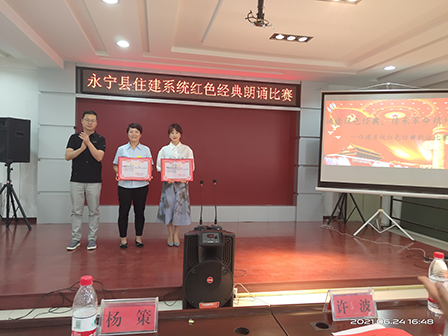 為慶祝建黨百年輝煌路,啟航時代新征程,近日,寧夏永寧縣住建系統(tǒng)組織舉行“誦讀紅色經(jīng)典,傳承革命精神”紅色經(jīng)典朗讀比賽活動。經(jīng)過層層角逐,市城控集團所屬子公司寧夏勇冠房地產(chǎn)開發(fā)有限公司參賽選手康亞茹、孫茹以優(yōu)異成績分別榮獲本次活動的二等獎、三等獎。
