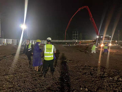 公司突擊隊員分駐在項目北區(qū)和南區(qū),每天分兩班,交接班時間為早上8時和晚上8時,他們兢兢業(yè)業(yè),任勞任怨?,F(xiàn)場監(jiān)理人員要對板房組裝、材料進場及時進行檢查驗收,并對材料數(shù)量進行確認(rèn)簽證;旁站混凝土澆筑,確保項目質(zhì)量;與建設(shè)單位和施工單位交接土方施工事宜;同建設(shè)單位協(xié)調(diào)施工現(xiàn)場交通,測量碎石墊層范圍,確定墊層厚度;督促施工單位按計劃完成工程量,要求他們編制橫道圖進度計劃表,及時增加人員和設(shè)備,保證按期完成。