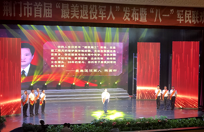 7月29日,“八一”建軍節(jié)前夕,荊門市首屆“最美退役軍人”發(fā)布儀式暨慶“八一”軍民聯(lián)歡演出在荊門劇院隆重舉行。此次全市“最美退役軍人”評選,經(jīng)網(wǎng)絡投票、意見征求和綜合審核等環(huán)節(jié)層層篩選,最終湖北荊門建工集團有限公司陳國新等來自全市各自崗位的20名優(yōu)秀退役軍人脫穎而出榮獲“最美退役軍人”稱號。