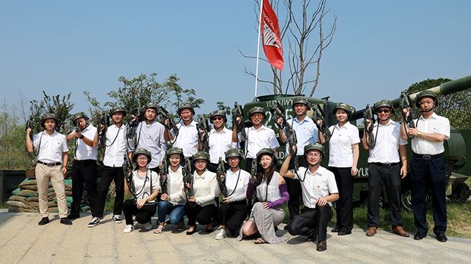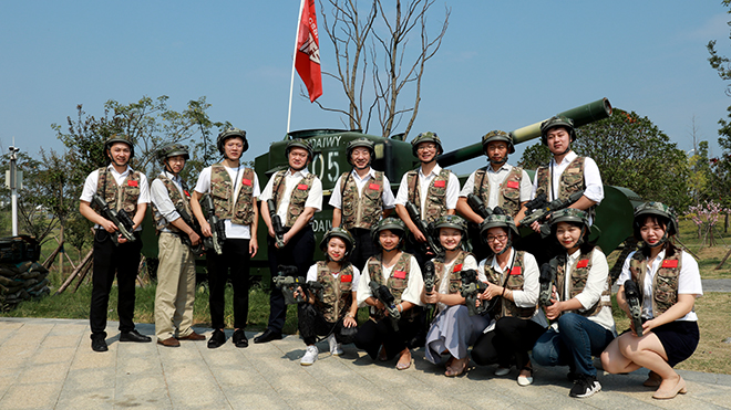 圖為軍事體驗中心進(jìn)行紅藍(lán)軍對戰(zhàn)體驗活動現(xiàn)場
