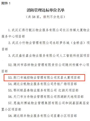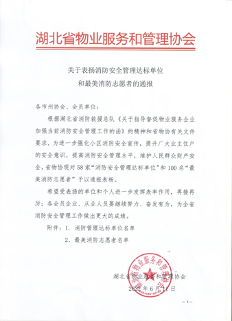 近日,市城控集團(tuán)直屬子公司市城控物業(yè)公司雙喜大廈項(xiàng)目服務(wù)中心被湖北省物業(yè)服務(wù)和管理協(xié)會(huì)評(píng)為“湖北省消防安全管理達(dá)標(biāo)單位”。在經(jīng)過嚴(yán)格審核、層層篩選后,該項(xiàng)目最終從湖北省眾多優(yōu)秀物業(yè)公司中脫穎而出,獲此殊榮。