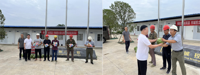 市城控集團直屬子公司市城控土投公司負責人帶隊深入到龍井大道南段道路工程項目現(xiàn)場,結(jié)合“我為群眾辦實事”實踐活動,開展2022年度“保安全 戰(zhàn)高溫 夏季送清涼”慰問活動。