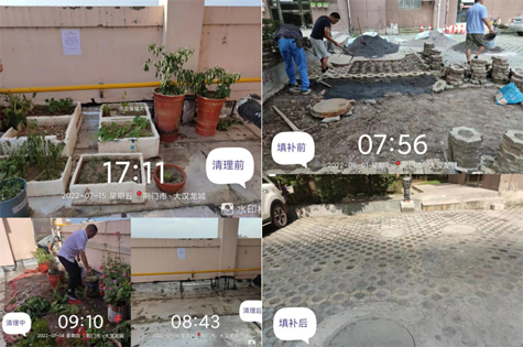 有細(xì)心的業(yè)主發(fā)現(xiàn),小區(qū)1棟2單元西邊停車位上原本地陷的大坑“不見(jiàn)”了,取而代之的是干凈平整的路面。由于時(shí)間久遠(yuǎn)、地陷等原因,造成小區(qū)1棟的停車位地面有凹陷。為消除安全隱患,避免對(duì)業(yè)主停車帶來(lái)不便,物業(yè)工作人員協(xié)調(diào)多方力量,籌措資金對(duì)該路面進(jìn)行修整、補(bǔ)平。此舉得到了小區(qū)業(yè)主的一致稱贊。