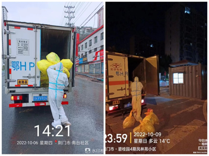 荊門中心城區(qū)封控后,公司所屬子公司京環(huán)公司黨支部第一時間召開會議部署醫(yī)廢收集處置工作,啟動應(yīng)急預(yù)案,京環(huán)公司全員連夜返崗?fù)度脶t(yī)廢收集轉(zhuǎn)運工作。隨著疫情不斷發(fā)展,封控區(qū)域及留觀隔離點位不斷增多,城區(qū)核酸檢測點最高達(dá)500多個,為保障全市疫情防控工作有序開展,京環(huán)公司加強(qiáng)收集轉(zhuǎn)運力量,積極尋求環(huán)保部門、各社區(qū)街道幫助,暢通溝通互聯(lián)機(jī)制,利用線上工作群實時更新各點位醫(yī)廢情況,不斷提高醫(yī)廢收集轉(zhuǎn)運效率。10月5日至10月13日凌晨,京環(huán)公司收集處置醫(yī)廢及涉疫垃圾共計103噸,其中12日單日收集量18.3噸,為2020年疫情以來單日最高收集量。