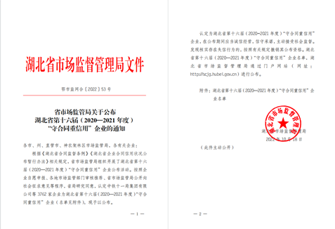 中房集團(tuán)荊門公司再獲省“守合同重信用”企業(yè)榮譽(yù)