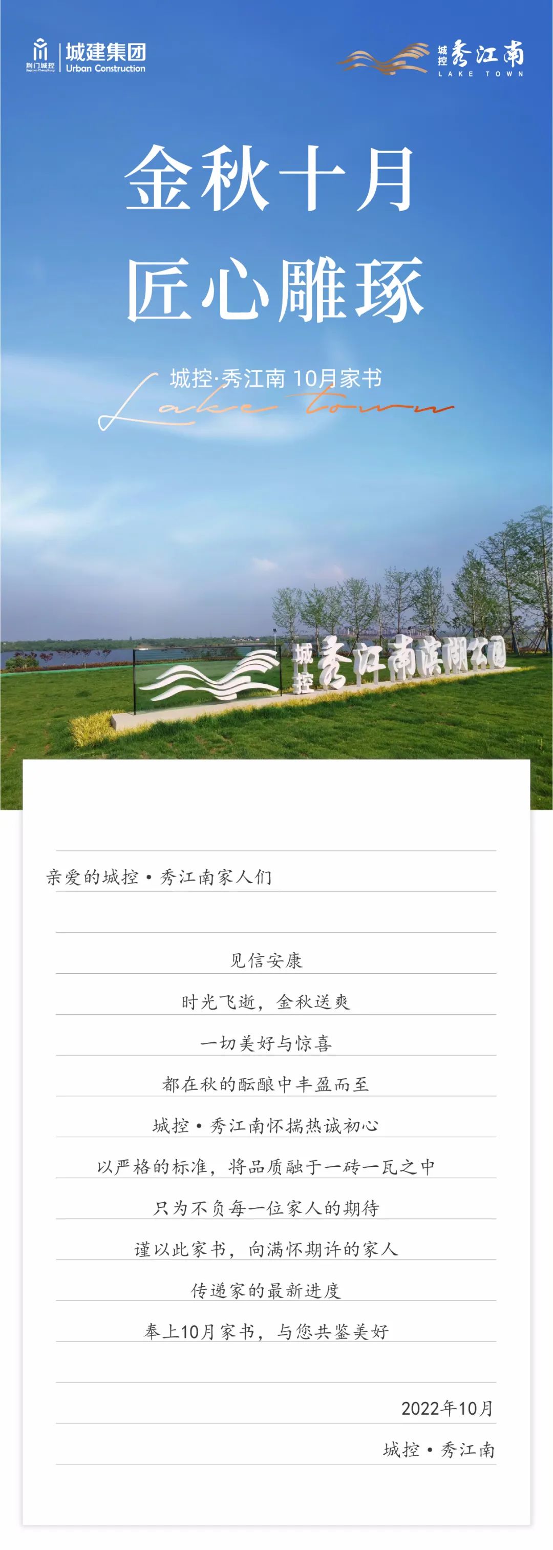 金秋收獲時,美好佳音至,時光匆匆而過,家也在時間中不斷呈現(xiàn)。城控?秀江南在筑造美好生活的道路上步履不止。一磚一瓦用匠心打磨,一草一木用真心澆灌,在時間的見證之下,幸福加速而來。