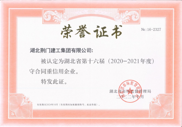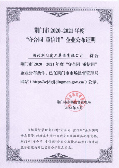 經(jīng)省市場監(jiān)督管理部門評選,建工集團喜獲省第十六屆(2020-2021年度)“守合同 重信用”企業(yè)榮譽稱號,這是公司繼8月獲評市“守合同 重信用”企業(yè)后,再次獲得省級殊榮。近日,東寶區(qū)市場監(jiān)管部門將獲獎證書送至公司并進行了授牌。