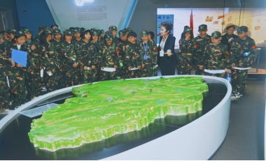 緊接著來到了一樓的荊門楚忘展廳,這里主要向?qū)W生們介紹了荊門的地形沙盤,并結(jié)合互動(dòng)投影更好的向同學(xué)們展示荊門的生態(tài)畫卷。展廳按照春、夏、秋、冬四季景色為空間語言,展示四季景觀的變化,讓同學(xué)們真正認(rèn)識(shí)自然、尊重自然、愛護(hù)自然。
