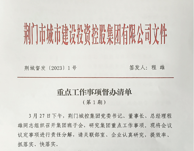 為切實轉(zhuǎn)變工作作風(fēng),狠抓工作落實,提高工作效率,近日,荊門城控集團(tuán)按照“圍繞中心、突出重點(diǎn)、抓住關(guān)鍵”的工作思路,堅持目標(biāo)導(dǎo)向、問題導(dǎo)向、結(jié)果導(dǎo)向原則,加強(qiáng)重點(diǎn)督辦,確保督辦事項“事事有回音,件件有落實”。