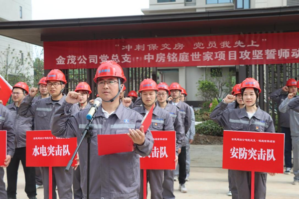 “在中房?銘庭世家項(xiàng)目收官攻堅(jiān)之際,我代表公司全體青年黨員宣誓:令行禁止、服從安排;行動(dòng)自覺(jué)、堅(jiān)守崗位;放棄休息、快趕進(jìn)度;奮戰(zhàn)半月,堅(jiān)決交房!”這是近日金茂建設(shè)公司黨總支在中房?銘庭世家項(xiàng)目召開(kāi)“沖刺保交房 黨員我先上”攻堅(jiān)誓師動(dòng)員會(huì)上的一幕。