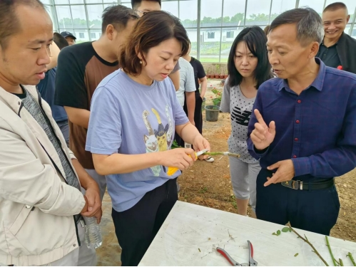 月季嫁接培訓(xùn)中,授課講師對(duì)切片、取芽、綁扎等操作步驟和養(yǎng)護(hù)流程進(jìn)行深入淺出的講解,學(xué)員自告奮勇動(dòng)手操作,有效增強(qiáng)了園藝專業(yè)技術(shù)知識(shí),提升了實(shí)操工作能力。