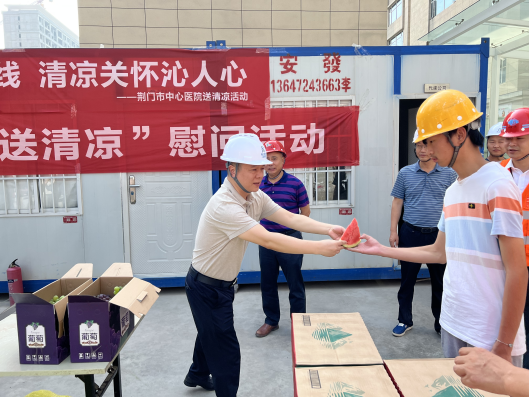 入伏時節(jié),高溫天氣給城市建設(shè)者帶來了炙熱“烤”驗。近日,荊門城建集團(tuán)參加鑫建公司和秀江南公司聯(lián)合開展的“送清涼”活動,并走訪慰問堅守在一線的工作人員。