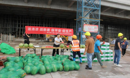 慰問(wèn)組先后走訪了市老干部活動(dòng)中心、長(zhǎng)寧新城新橋商業(yè)綜合體、荊門西城市綜合交通樞紐配套工程等9個(gè)在建項(xiàng)目,為一線建設(shè)者送去礦泉水、西瓜、防暑藥品等慰問(wèn)品。每到一個(gè)項(xiàng)目,慰問(wèn)組都會(huì)詳細(xì)了解高溫天氣下施工部署安排和防暑降溫措施落實(shí)情況,并囑咐施工人員做好個(gè)人防護(hù),注意防暑降溫,安全有序推進(jìn)各項(xiàng)工作。