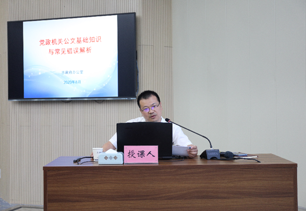 活動分四個環(huán)節(jié)進行。首先開展公文寫作培訓,市政府文秘科科長宋孝華以《黨政機關公文基礎知識與常見錯誤解析》為題,圍繞黨政機關公文特點、編排規(guī)則與常見錯誤等進行專題輔導。隨后,集中收看《暢通工程?“荊”天辦》欄目。接著,傳達學習省委書記王蒙徽和市委書記胡亞波近期講話精神。最后,開展“天天三分鐘 精神記心中”黨員教育線上學習競答,評選出本期“學習之星”。