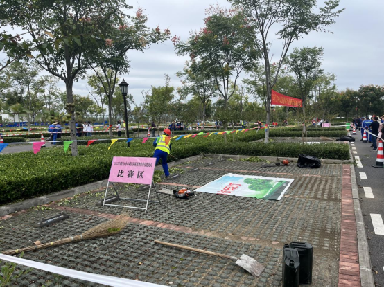 比賽開(kāi)始前,花博園公司在園區(qū)各輔路上設(shè)立錐桶、警示牌等醒目標(biāo)識(shí),提醒過(guò)往司機(jī)減速慢行,注意避讓。提前測(cè)量好修剪面積,確保公平公正。提醒參賽選手佩戴安全帽、防護(hù)墨鏡及手套,檢查修剪工具,確保比賽安全、順利進(jìn)行。