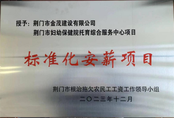 近日,從荊門市根治拖欠農(nóng)民工工資工作領(lǐng)導(dǎo)小組辦公室傳來(lái)喜訊,金茂公司承建的荊門市婦幼保健院托育綜合服務(wù)中心項(xiàng)目榮獲“標(biāo)準(zhǔn)化安薪項(xiàng)目”,這是繼中房?鑫鼎學(xué)府、中房?攬?jiān)滦浅巾?xiàng)目后,金茂公司再度蟬聯(lián)該項(xiàng)榮譽(yù)。