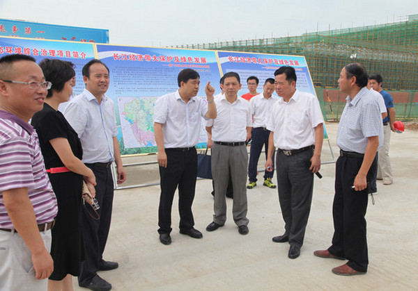 圖為鐘鋼行長(右三)調(diào)研綠色生態(tài)科技城項目現(xiàn)場