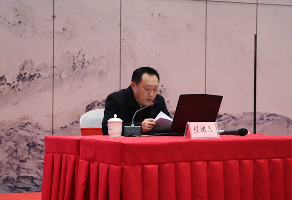 圖為城控集團(tuán)黨委委員、副總經(jīng)理江泉作資產(chǎn)經(jīng)營(yíng)的理論與實(shí)踐專(zhuān)題講課