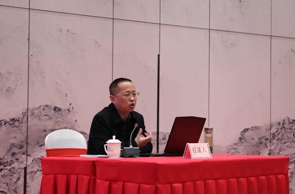 圖為城控集團(tuán)黨委委員、副總經(jīng)理張利鳴作現(xiàn)行投融資政策解讀專(zhuān)題講課
