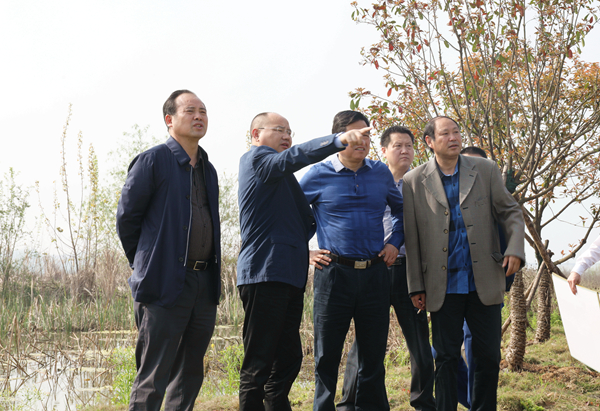 圖為安徽未名生物經(jīng)濟集團總裁曹文波(右三)到生態(tài)科技城考察