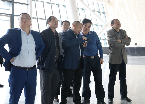 圖為安徽未名經(jīng)濟集團總裁曹文波聽取生態(tài)科技城的產(chǎn)業(yè)規(guī)劃