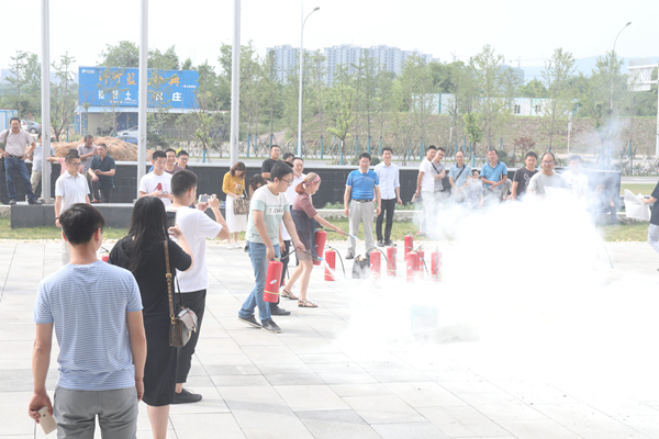圖為集團(tuán)職工在生態(tài)科技城北廣場(chǎng)進(jìn)行消防演習(xí)