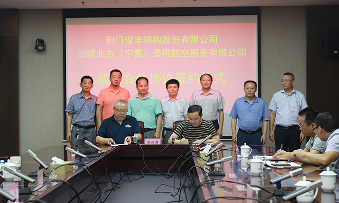 簽約儀式上,豐金亮與景德鎮(zhèn)市名鎮(zhèn)天下陶瓷文化創(chuàng)意有限責(zé)任公司董事長(zhǎng)歐陽(yáng)琦簽訂了《戰(zhàn)略合作協(xié)議》;荊門俊豐鋼構(gòu)股份有限公司董事長(zhǎng)葉東與泊鷺北方(寧夏)通用航空服務(wù)有限公司董事長(zhǎng)徐晨陽(yáng)簽訂了《合作協(xié)議》。