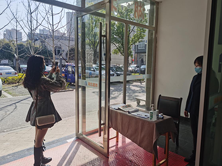 建勝公司工作人員對(duì)檢查人員進(jìn)行測(cè)溫登記