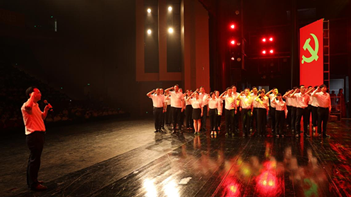 文藝匯演中,舉行了新黨員入黨宣誓儀式,在市城控集團(tuán)黨委副書記張本華帶領(lǐng)下,新黨員上臺宣誓,面對鮮紅的黨旗莊嚴(yán)承諾,表達(dá)為共產(chǎn)主義事業(yè)奮斗終身的決心和信念。