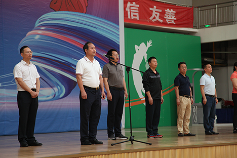 隨后,賽事現(xiàn)場,裁判員、運(yùn)動(dòng)員代表分別上臺(tái)莊嚴(yán)宣誓。杜佐鵬宣布籃球賽開幕,在熱烈的掌聲中比賽徐徐拉開帷幕,程雄為職工籃球賽揭幕戰(zhàn)開球。