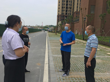 在雙喜大廈項(xiàng)目,江泉一行實(shí)地檢查了園區(qū)封閉情況、環(huán)境消殺、人員和車(chē)輛進(jìn)出管理等方面工作。截止至8月7日凌晨3點(diǎn),雙喜大廈項(xiàng)目工作人員已連夜加班加點(diǎn)完成了園區(qū)各出入口近百米的封閉圍板,為業(yè)主筑起一道堅(jiān)固的“防護(hù)墻”,只保留園區(qū)東入口作為車(chē)輛和人員進(jìn)出通道,嚴(yán)格實(shí)行“亮碼、測(cè)溫、戴口罩”三要素措施。江泉對(duì)項(xiàng)目全體工作人員不怕苦、不怕累的精神給予了充分肯定。