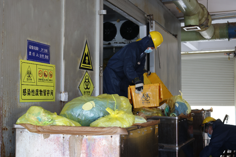 志愿者在醫(yī)廢處置車(chē)間工作