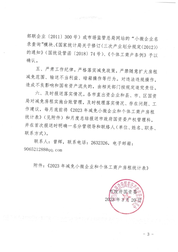 市政府國資委關(guān)于2023年減免小微企業(yè)和個體工商戶房租的通知