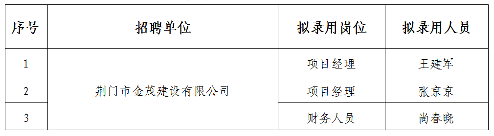 1.荊門市金茂建設(shè)有限公司成本管理崗位空缺。