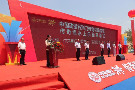 市委副書記、市長李濤宣布荊門傳奇海水上樂園開園。中國動漫集團(tuán)有限公司副總經(jīng)理孫浩、副市長唐承鳳出席并共同為“中國動漫谷荊門傳奇島旅游區(qū)”揭牌。市委常委、市委宣傳部部長徐莉出席活動并致辭。市政府秘書長羅少華參加活動。漳河新區(qū)黨工委書記陶然主持開幕式。市城控集團(tuán)領(lǐng)導(dǎo)班子成員,城建集團(tuán)相關(guān)負(fù)責(zé)人等參加開幕式。