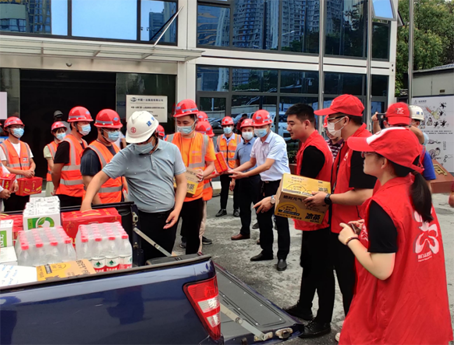 隨后,張宇軒一行為奮戰(zhàn)在項(xiàng)目一線的工作人員送上礦泉水、金銀花露、涼茶等防暑慰問物資。張宇軒表示,一線工作人員是城市美好生活的創(chuàng)造者,希望大家在注意身體健康的前提下繼續(xù)發(fā)揚(yáng)艱苦奮斗和吃苦耐勞精神,為城市建設(shè)添磚加瓦?!?/span>