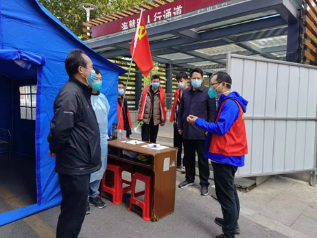 在社區(qū)防控點,杜佐鵬、程雄一行聽取了黨委副書記張本華的情況匯報,并與志愿者親切交談,詳細(xì)了解了社區(qū)疫情防控舉措、值班值守、便民服務(wù)等情況,詢問了值守期間的工作、生活情況。勉勵他們勇挑抗疫重?fù)?dān)、堅守防控崗位、守護群眾安康,奮力奪取疫情防控阻擊戰(zhàn)的全面勝利。(文、圖:榮華)