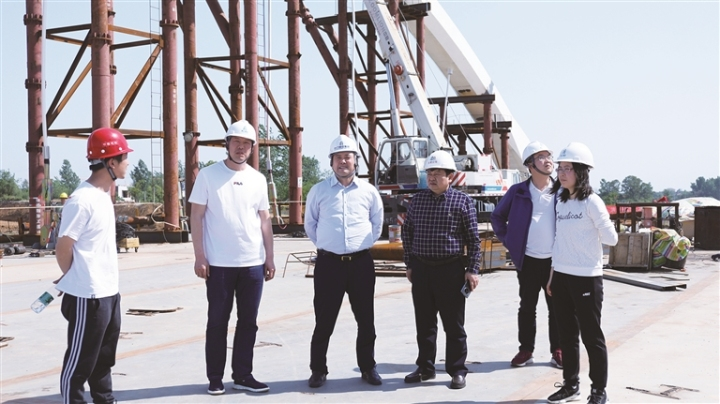 荊門城控集團(tuán)黨委書記、董事長杜佐鵬(左三)調(diào)研漳河新區(qū)鳳袁路片區(qū)