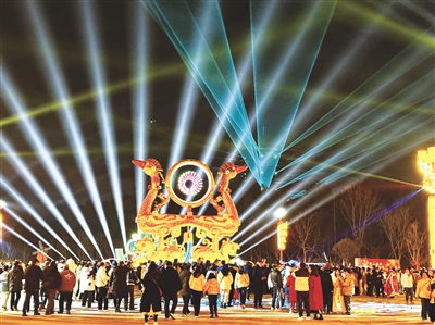 在歡慶祥和的夜幕中,一場盛大的龍年新春燈會正在上演,各式各樣的彩燈造型,融合了傳統(tǒng)美學(xué)和現(xiàn)代元素,打造出一場充滿“荊風(fēng)楚韻”的視覺盛宴,現(xiàn)場游客紛紛拍照留影。