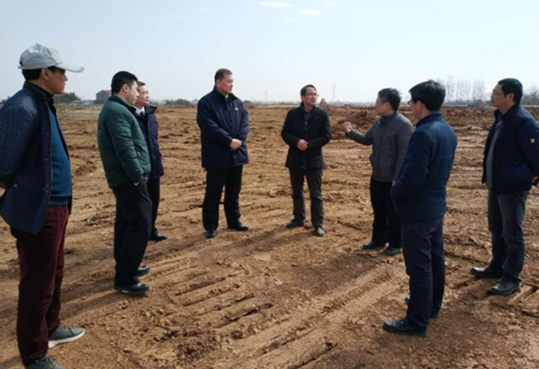 圖為李繼軍一行調(diào)研荊門保稅物流中心(B型)項目現(xiàn)場