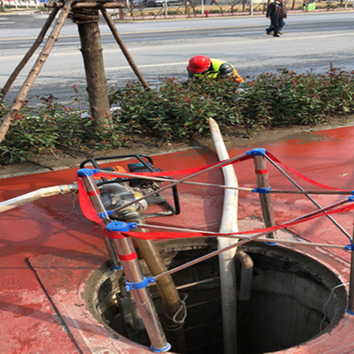 圖為針對積水的管廊進行積極的搶修