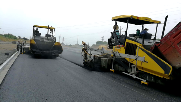 圖為:尉遲恭路中段三標(biāo)(荊山大道―寶元路)刷黑現(xiàn)場(chǎng)