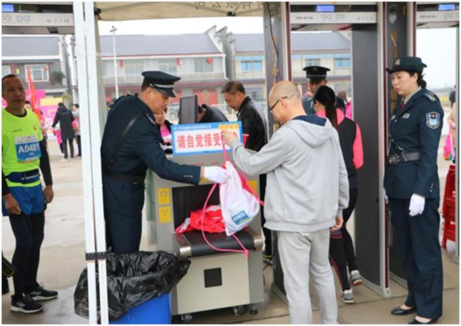 陽春三月,春光無限。3月23日上午7點,以“花漾運河,樂跑沙洋”為主題的湖北沙洋江漢運河第三屆國際半程馬拉松賽在沙洋鳴槍開跑。此次賽事吸引了國際國內(nèi)6000余名參賽選手及大批游客。荊門市金盾保安服務(wù)有限公司應(yīng)賽事組委會要求,選派23名專業(yè)安檢工作人員為賽事提供安全檢查服務(wù),共安檢約 9000余人次,圓滿完成了此次安檢工作任務(wù),確保了賽事的順利進(jìn)行。(文:鄧濤 圖:蔡小龍)