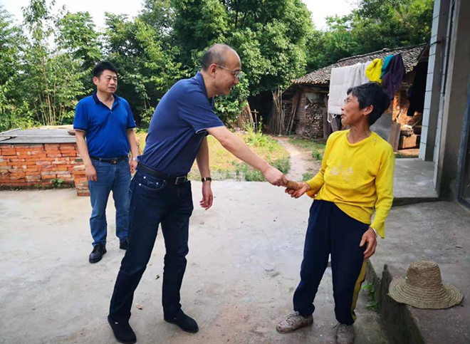 6月26日下午,陳永根帶領公司扶貧工作專班人員來到漳河鎮(zhèn)雄峰村,對該村貧困黨員林春進行走訪慰問,并送去慰問金。在林春家,面對面交談、心貼心交流,詳細了解其家庭情況、身體狀況、生活開支等情況,認真聽取生活困難和問題、今后的主要打算,并鼓勵他樹立信心,努力戰(zhàn)勝疾病和克服生活困難。當日還走訪慰問了該村對口幫扶貧困家庭。