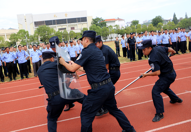 為了迎接2019年秋季開學(xué),切實(shí)加強(qiáng)中小學(xué)、幼兒園校園安保工作,全面提高校園安保人員處置突發(fā)事件的能力,進(jìn)一步提升校園安保人員的整體素質(zhì),筑起“平安校園”的銅墻鐵壁。8月26日-8月29日,市金盾保安培訓(xùn)公司對(duì)鐘祥市中小學(xué)及幼兒園共計(jì)459名校園安保人員開展了為期四天的專業(yè)培訓(xùn)。培訓(xùn)的內(nèi)容主要為:保安員基礎(chǔ)知識(shí)、校園突發(fā)事件應(yīng)急處置、保安防護(hù)裝備器材的使用、消防技能及軍事訓(xùn)練。