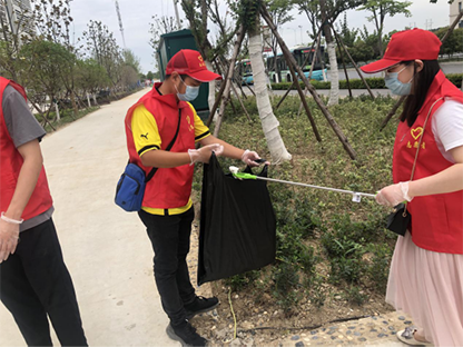 活動(dòng)現(xiàn)場(chǎng),20多名志愿者身穿志愿者紅色馬甲,頭戴志愿者紅色帽子,他們高舉司旗和志愿者旗幟,現(xiàn)場(chǎng)猶如一片片火紅的云彩鑲嵌在場(chǎng)館周圍,這一抹“志愿紅”和志愿者們的勞動(dòng)熱情把現(xiàn)場(chǎng)妝點(diǎn)得格外靚麗多彩。志愿者們手拿鉗子、垃圾袋,推著兩輪斗車,撿拾綠化帶中的白色垃圾、搬運(yùn)現(xiàn)場(chǎng)廢棄建筑材料。他們分為兩組,分工明確,密切協(xié)作,沿著場(chǎng)館周圍地毯式搜尋前進(jìn),不放過(guò)任何一處死角。志愿者們不怕臟、不怕累,發(fā)揚(yáng)吃苦耐勞精神,個(gè)個(gè)干得歡快自如,熱情高漲,勞動(dòng)現(xiàn)場(chǎng)不時(shí)傳來(lái)一陣陣歡聲笑語(yǔ)。經(jīng)過(guò)兩個(gè)小時(shí)的奮戰(zhàn),場(chǎng)館外圍公共區(qū)域的雜物和綠化帶中的白色垃圾被大家清理得干干凈凈,整個(gè)項(xiàng)目現(xiàn)場(chǎng)干凈整潔,給人煥然一新的感覺(jué)。
