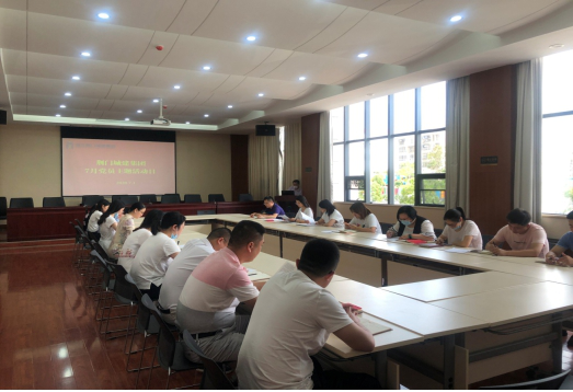 升國(guó)旗儀式結(jié)束后,全體黨員在二樓大會(huì)議室集中學(xué)習(xí)了《黨章》、習(xí)近平在十九屆中央紀(jì)委三次全會(huì)上和參加十三屆全國(guó)人大三次會(huì)議湖北代表團(tuán)審議時(shí)的重要講話精神。城建集團(tuán)機(jī)關(guān)支部書記劉宇環(huán)以“用行動(dòng)踐行新時(shí)代共產(chǎn)黨人初心和使命”為主題給黨員上了一堂黨課,激勵(lì)城建集團(tuán)全體黨員要立足新時(shí)代、勇?lián)率姑?、展現(xiàn)新作為,用實(shí)際行動(dòng)為黨的生日獻(xiàn)禮。