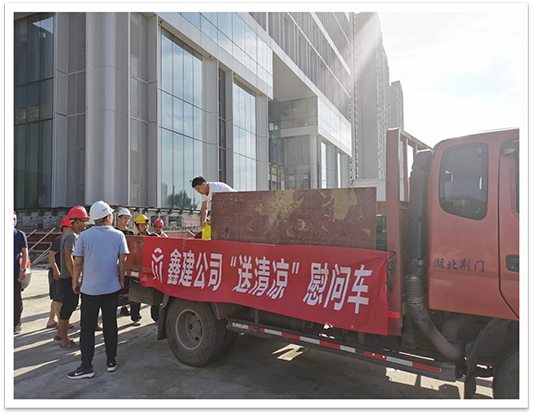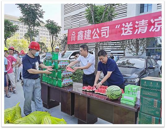 “這么熱的天,吃到你們送來的西瓜,這下干活更有勁了。”傳媒中心項(xiàng)目施工員說道,“不僅有西瓜,還有藿香正氣液、風(fēng)油精、礦泉水等各種防暑降溫物資,鑫建公司關(guān)愛給了我們很大的鼓勵(lì),我們定不會(huì)辜負(fù)關(guān)懷,爭(zhēng)取早日實(shí)現(xiàn)項(xiàng)目竣工。”