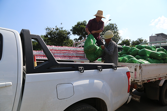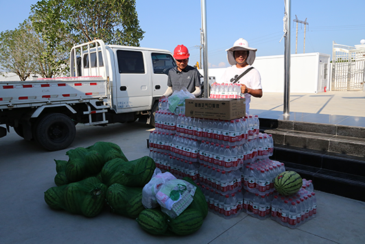 施工隊(duì)伍裝運(yùn)防暑降溫物資